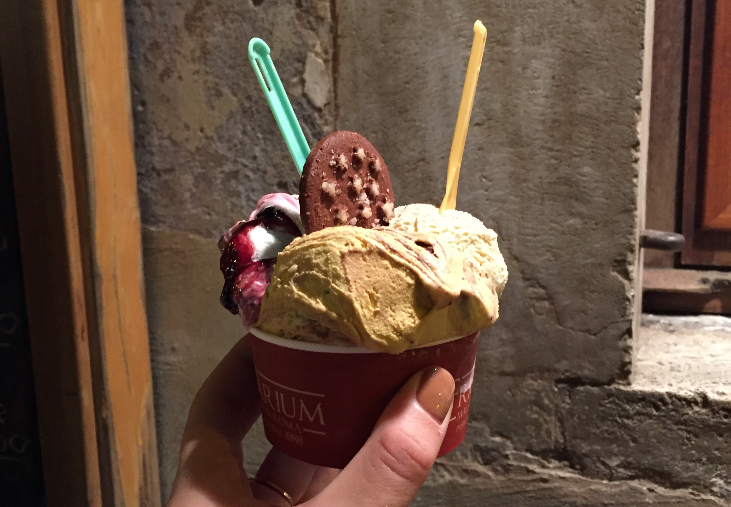 8. Sample every flavor of Gelato at the Frigidarium in Piazza Navona ... "Frigidarium", voted our favorite flavor, which still seems a mystery to me what's actually in it. Caramel? Cake batter? I have no idea... calories, for sure.